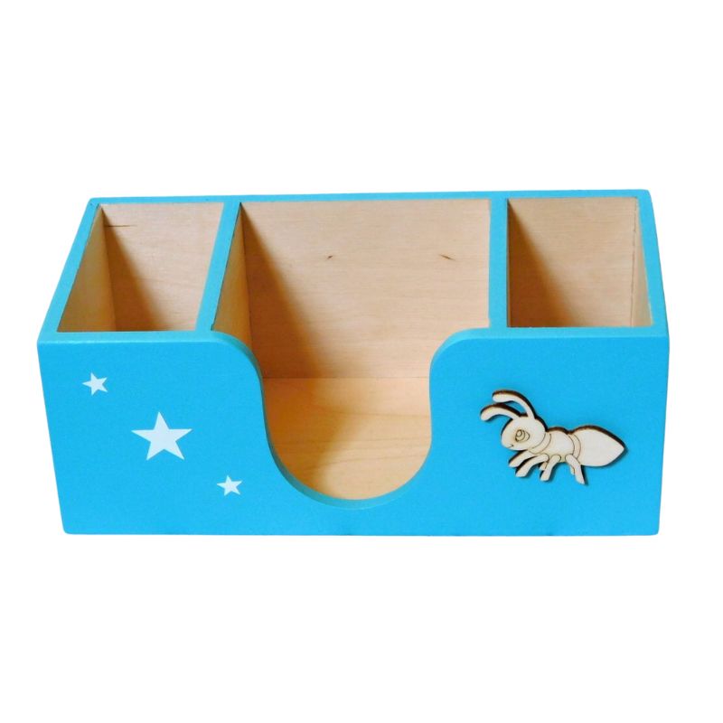 Dětský dřevěný stojánek na tužky ozdobený roztomilým mravenečkem.