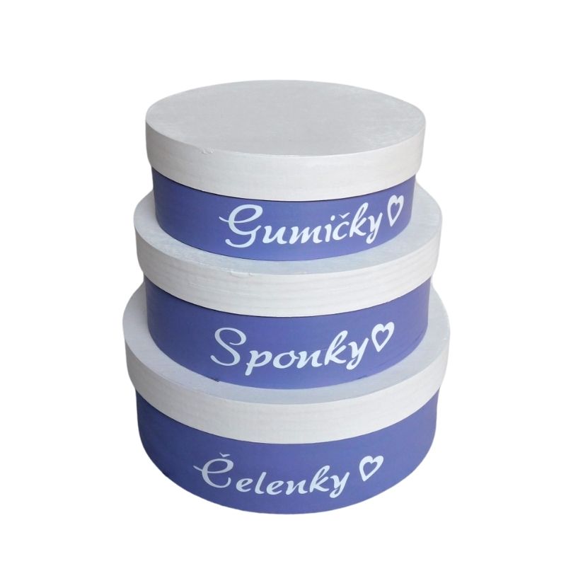 Sada kulatých krabiček na sponky, gumičky a čelenky.