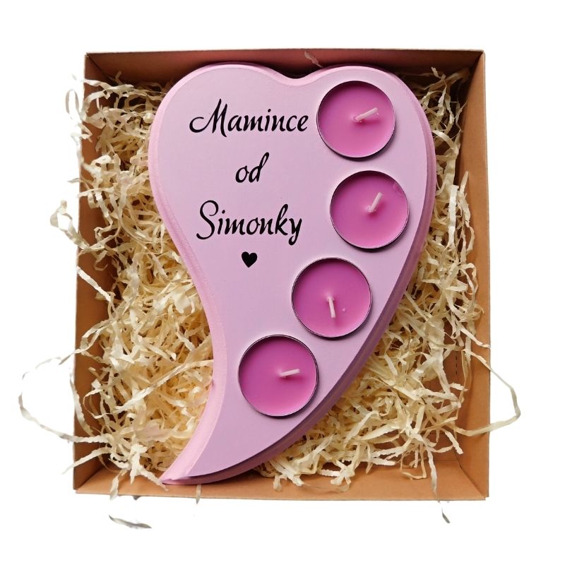 Dřevěný svícen srdce s věnováním pro maminku.